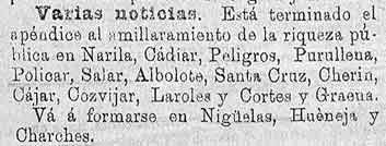 13 de abril de 1887. Amillaramientos de cozvíjar y Nigüelas