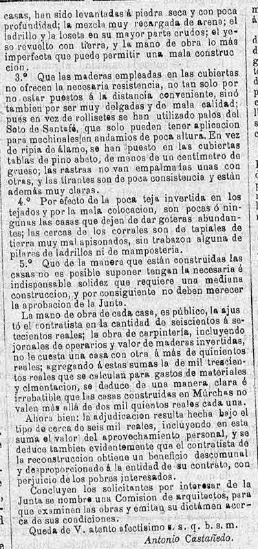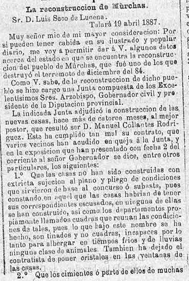 22 de abril de 1887. Queja por la marcha de la reconstrucción
