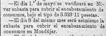 27 de abril de 1887. Consumos de Mondújar