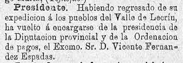 28 de abril de 1887. El Presidente e la Diputación Sr.