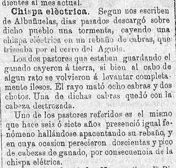 29 de abril de 1887. Un rayo de una tormenta mata ocho cabras