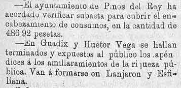 7 de abril de 1887. Consumos de Pinos del Rey y