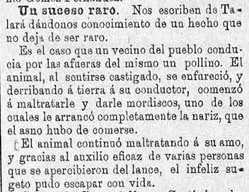 8 de abril de 1887. Un pollino le arranca la nariz a un