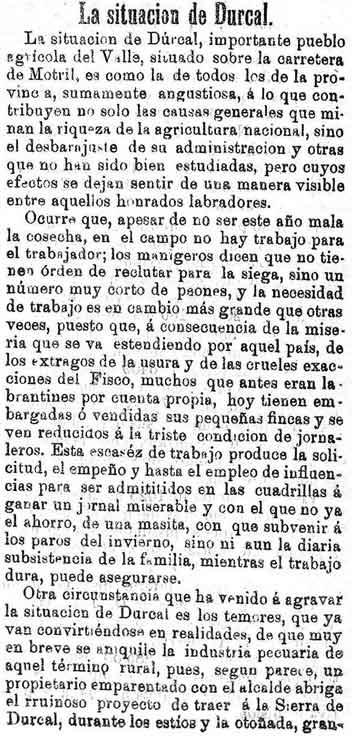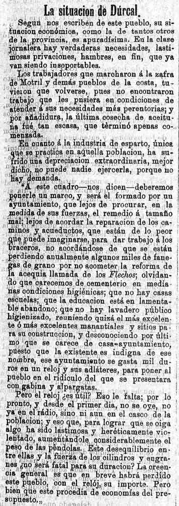 5 de agosto de 1887. A la situación de miseria de Dúrcal por