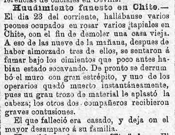 27 de agosto de 1887. Un hundimiento de una casa en Chite