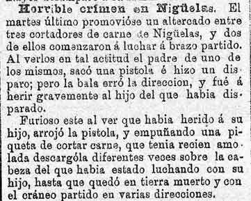 27 de agosto de 1887. Horrible crimen entre carniceros de Nigüelas
