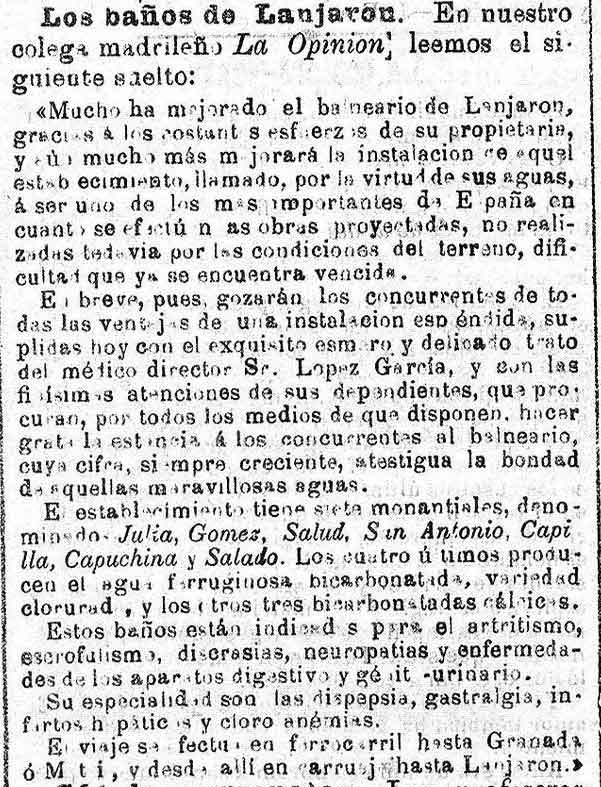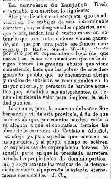 7 de agosto de 1887. La carretera de Lanjarón casi paralizada