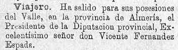 13 de febrero de 1887. El presidente Espadas en el Valle