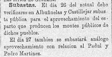 17 de febrero de 1887. Espartos de Albuñuelas y Padul