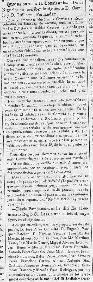 23 de febrero de 1887. Quejas desde Nigüelas contra la Comisaría Regia
