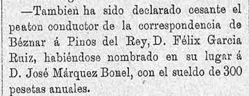 24 de febrero de 1887. Peatón de correspondencia de Béznar a