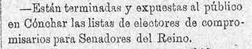 24 de febrero de 1887. Listas electorales de Cónchar