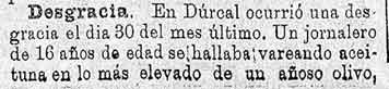 3 de febrero de 1887. Accidente en Dúrcal al caerse de un