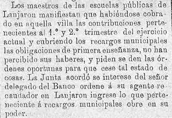 6 de febrero de 1887. Los maestros de Lanjarón se quejan de