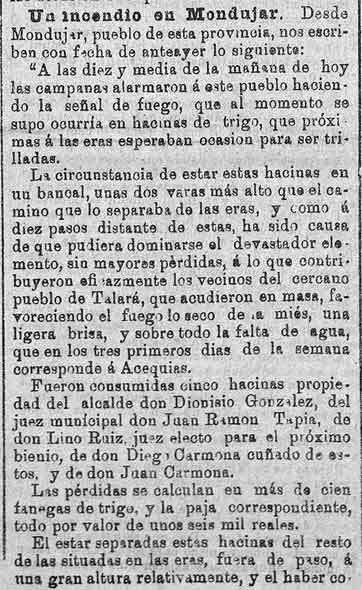 12 de julio de 1887. Incendio en Mondújar, donde se quema las