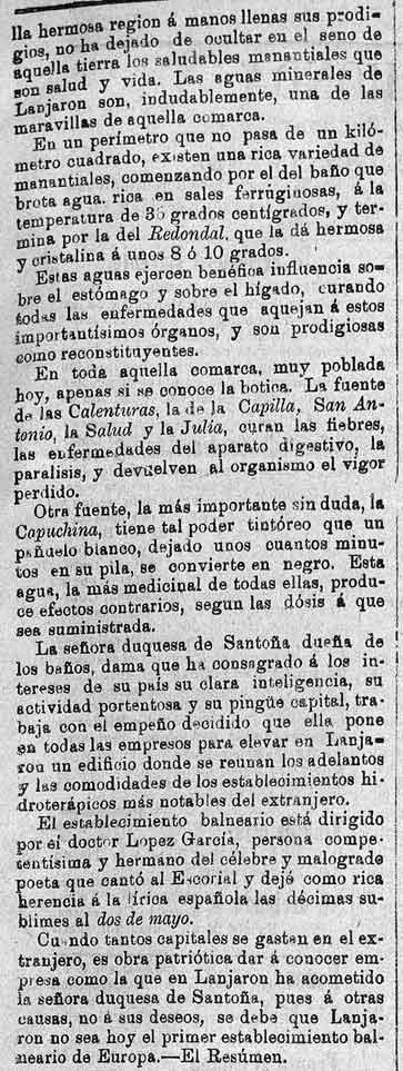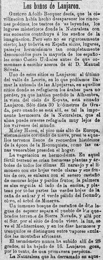 27 de julio de 1887. Visitante e Lanjarón