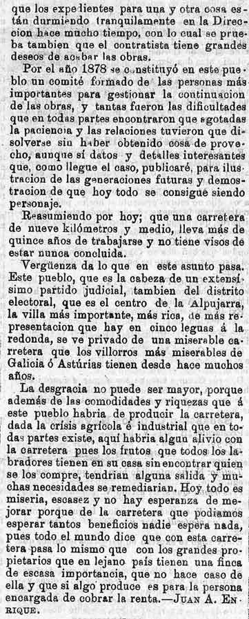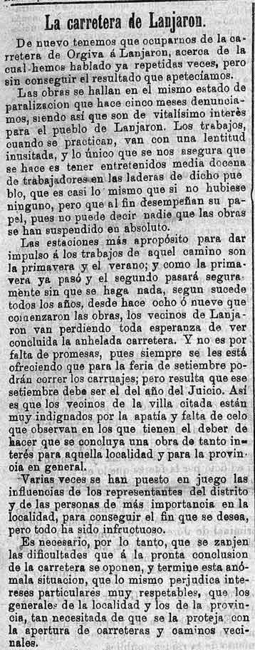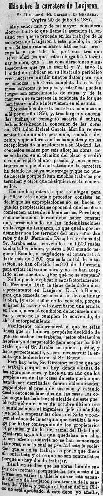 17 de julio de 1887. La carretera de Lanjarón sigue