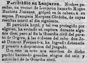 21 de julio de 1887. Un vecino de Lanjarón mata a su mujer