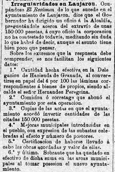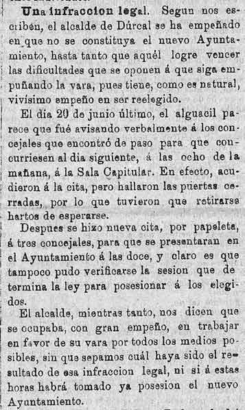 5 de julio de 1887. El antiguo alcalde de Dúrcal "se ha