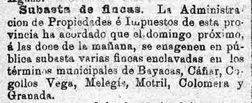 30 de julio de 1887. Subasta de fincas en Melegís