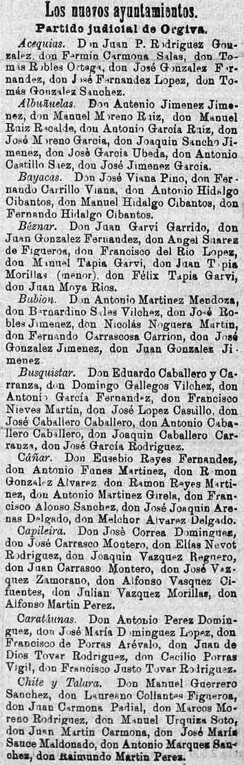 7 de julio de 1887. Componentes de los nuevos ayuntamientos
