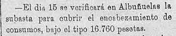 14 de junio de 1887. Consumos de Albuńuelas
