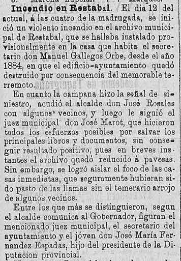 15 de junio de 1887. Violento incendio del archivo municipal