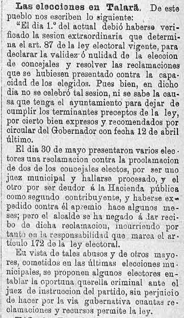 7 de junio de 1887. Denuncias de abusos en las elecciones de