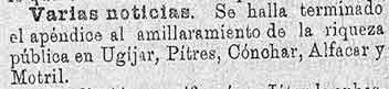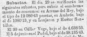 24 de mayo de 1887. Consumos de Lanjarón y Padul