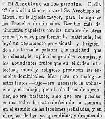 11 de mayo de 1887. El arzobispo tras una visita a Motril al