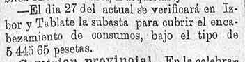 25 de mayo de 1887. Consumos de Ízbor y Tablate