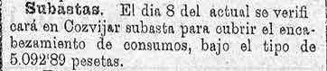 4 de mayo de 1887. Consumos de Cozvíjar