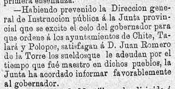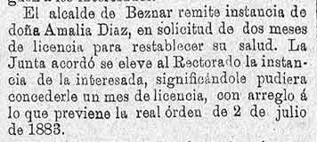 6 de mayo de 1887. Maestra de Béznar