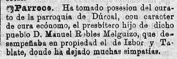 10 de abril de 1888. Nuevo cura en Dúrcal, antes estaba en