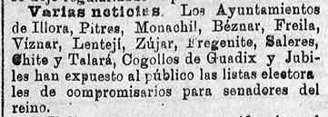 13 de abril de 1888. Listas electorales de Béznar, Saleres, y