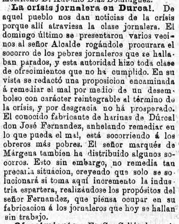 14 de abril de 1888. La crisis jornalera que afecta a toda la