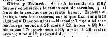 12 de diciembre de 1888. Agricultura de Chite y Talará,