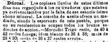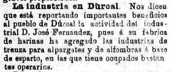 7 de diciembre de 1888. Industria en Dúrcal: Harina y esparto