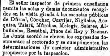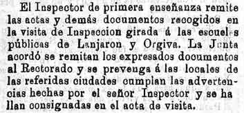 15 de diciembre de 1888. Inspección de las escuelas de