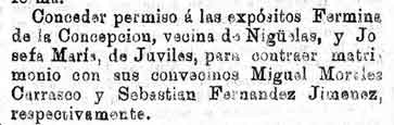 4 de diciembre de 1888. Expósito de Nigüelas