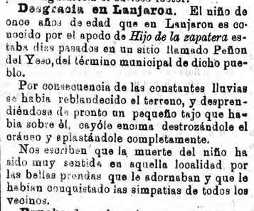 7 de diciembre de 1888. Muere un niño en Lanjarón al caerle