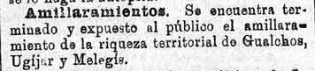 2 de marzo de 1888. Amillaramientos de Cozvíjar