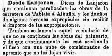 3 de marzo de 1888. En Lanjarón están paralizadas las obras