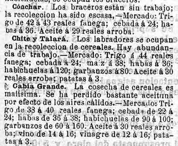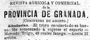 14 de agosto de 1889. Agricultura de Albuńuelas, Cónchar, y