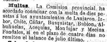 28 de agosto de 1889. Multados Lanjarón, Ízbor, Chite,