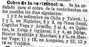 28 de agosto de 1889. Cobro de contribución en algunos