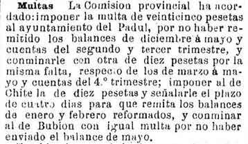 2 de agosto de 1889. Multado Padul