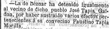 8 de agosto de 1889. Detención en Béznar por robo