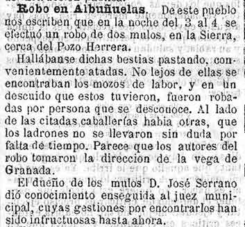 8 de agosto de 1889. Robo de dos mulos en Albuńuelas