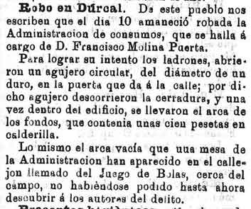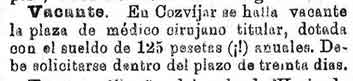 17 de enero de 1889. Vacante la plaza de médico de Cozvíjar